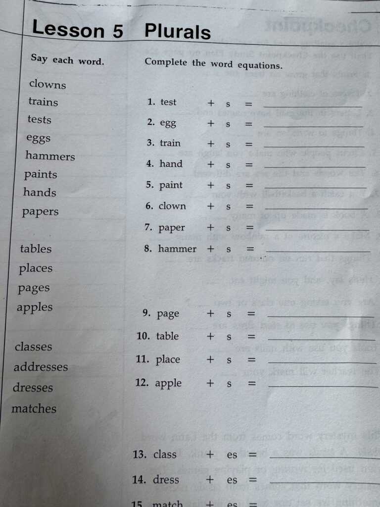 English: Nouns sheet