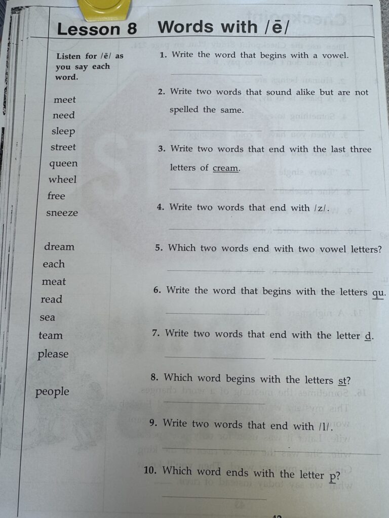 Spellingβ words with long e. Due, Monday! Test Monday!